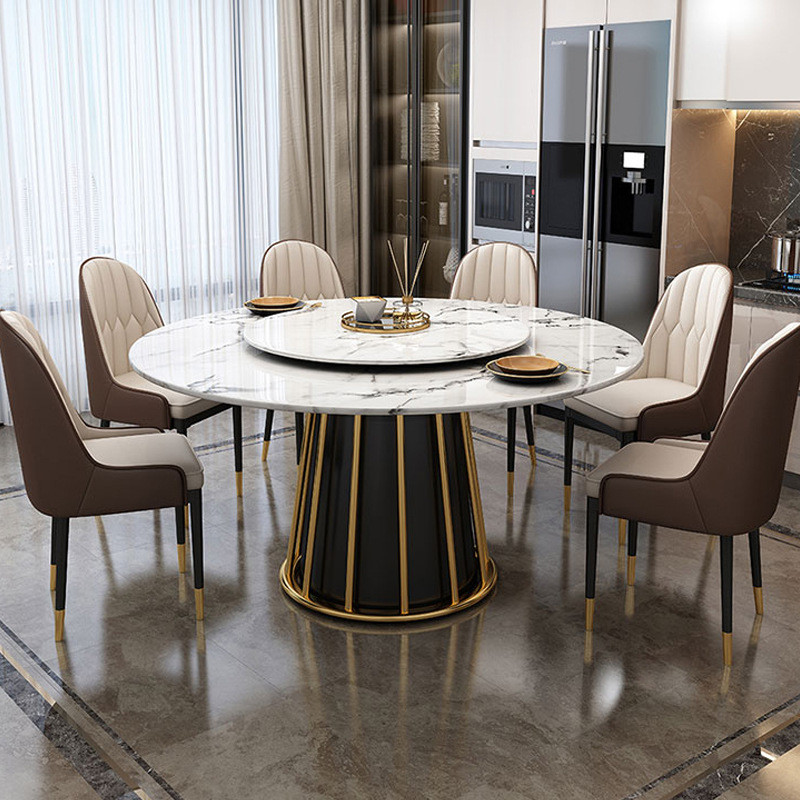 Nordic Turntable Dining Tables Set Luxury Marble Round Dining Table