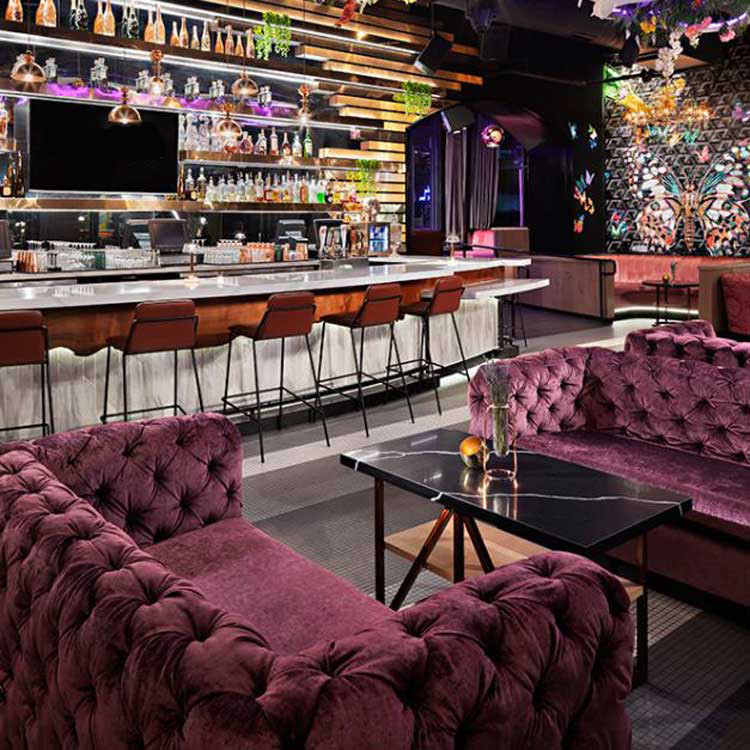 Velvet Purple Club Lounge Sofa Classic Button Tufting Bistro Sofa
