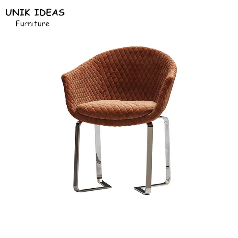 Luxury Custom Nordic Dining Chair Orange Velvet Metal Leg Hotel Furniture Seat