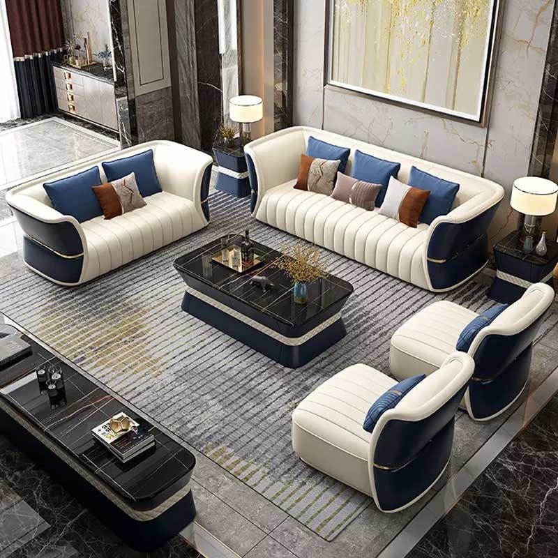 Italian Luxury Style Living Room Furniture Sectional Leather 1+2+3 Sofa Set
