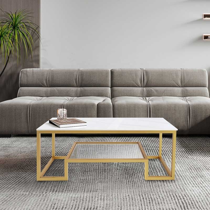 Gold finish acrylic coffee table uses gold metal as the whole frame, which is used as the support and also enhances the stability